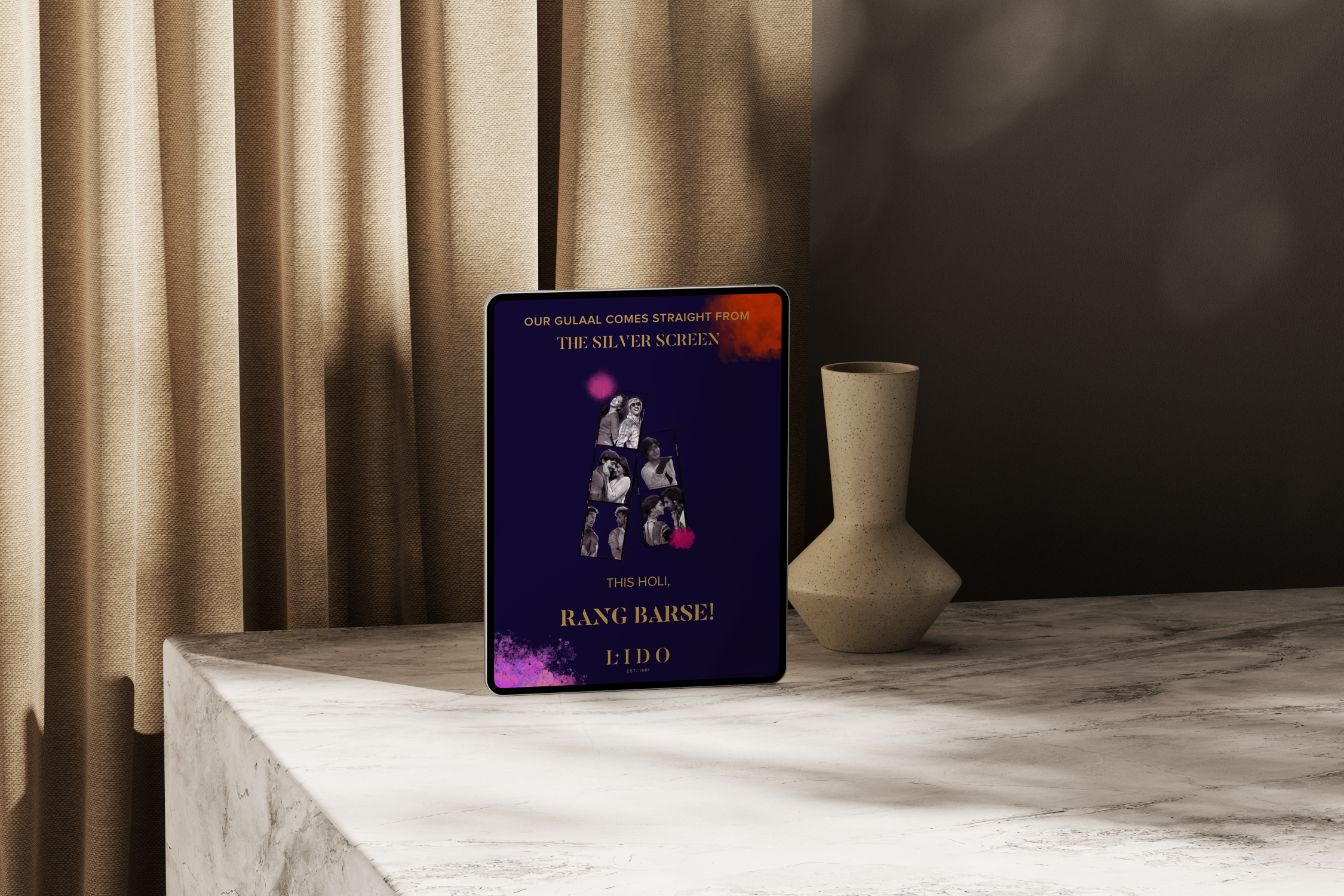 In our pursuit of poetic justice for an establishment catering to cinema lovers, we integrated cinematic masterpieces into the digital strategy. Our campaign films featured iconic moments from Indian cinema history, engaging the audience through amusing filmy puns and greetings. Each cinematic creation, simmered in the signature Lido colour palette of purple and gold, served as a perfect recall of the overarching intention to position Lido as a beacon of cinematic excellence.